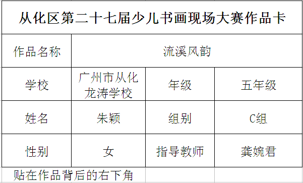 本次比赛的主题是“墨韵溢彩,心绘流溪”!赛前美术教师龚婉君老师按照比赛规格和要求,对两名比赛选手进行了有针对性的辅导。