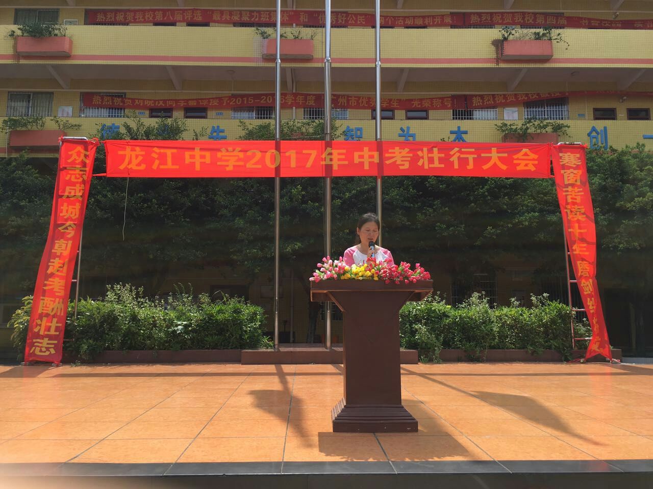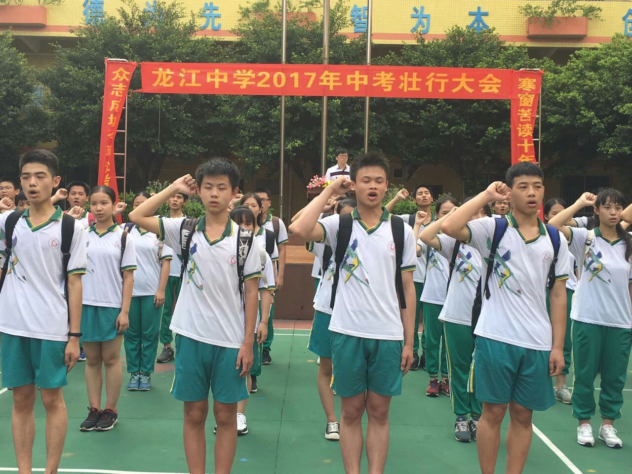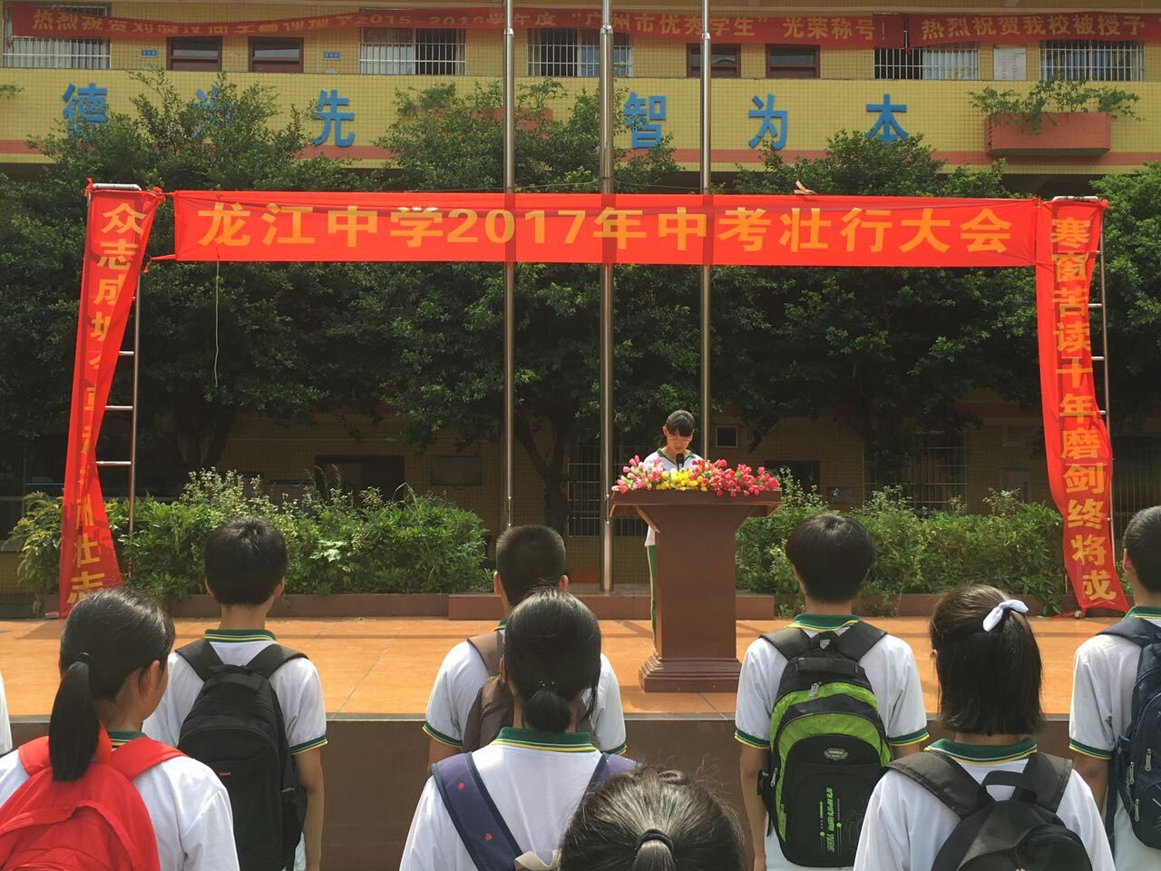 今天是一个激动人心的日子。在初三同学即将奔赴中考赛场之际,龙江中学全体师生齐聚操场,隆重举行了2017级学生中考壮行大会。