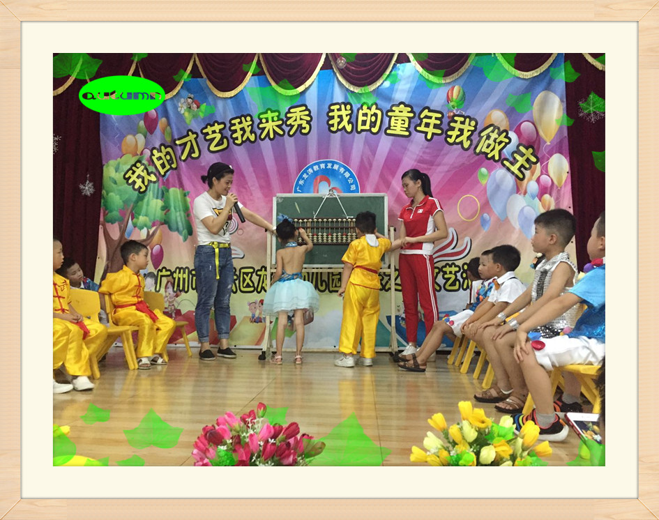 看完了舞蹈兴趣班的表演,接下来是我们珠心算兴趣班的小朋友给我们带来的《拨珠、速算、心算》。