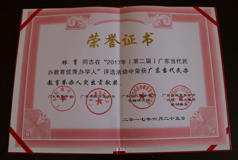 2017年6月25日,第二届广东当代民办教育优秀办学人颁奖大会暨民办教育新法报告会在东莞市隆重举行。