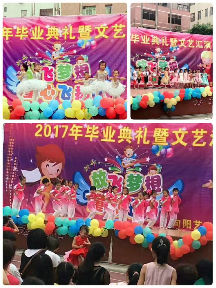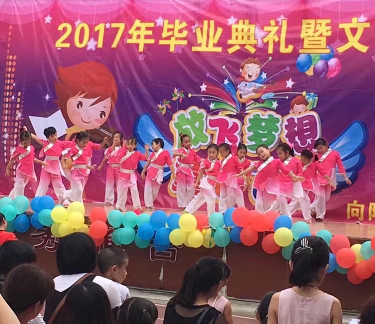 时间时间像飞鸟,滴答滴答向前跑,转眼间三年过去了。三年前一群孩子迈着蹒跚的步伐走进幼儿园,三年后的今天这群孩子长大了,变得聪明懂事,学会了许多本领,三年的时间即将在孩子们快乐、健康地成长里划上完美的句号,今天孩子们毕业了,即将升入小学的殿堂!为了孩子留下美好的回忆,让孩子充满自信心和自豪感进入小学。2017年7月7日下午4点我园为孩子们举办了一场隆重的毕业汇演!
