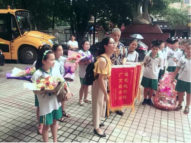 正当第三十三教师节来临之际,我校604班家长20多位家长满怀感激之心,手捧鲜花、提着果篮,代表全班学生家长将绣有“遍栽桃李树,广育栋梁材”“几年岁月几多乐,一声教诲一生情”字样的两面锦旗分别赠送给学校王正刚校长和604班班主任刘晶老师,以此感谢学校、老师对孩子无微不至的照顾和关怀。