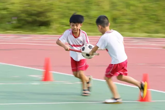 随着体育何国荣老师的一声哨响,各班第一组的同学如离弦的箭,“嗖”地一下向前冲出去了,有的同学顾得上速度,球却不听使唤掉了,但反应灵敏的他们,迅速夹起球继续冲。后面的啦啦队比参赛的同学还激动,奔着跳着喊着,声音响彻整个校园。到每班最后一组同学比赛的时候,同学们的加油声和欢呼声掀起了最高的浪潮,眼神不约而同地朝最后这组同学奔跑的路径移动着!