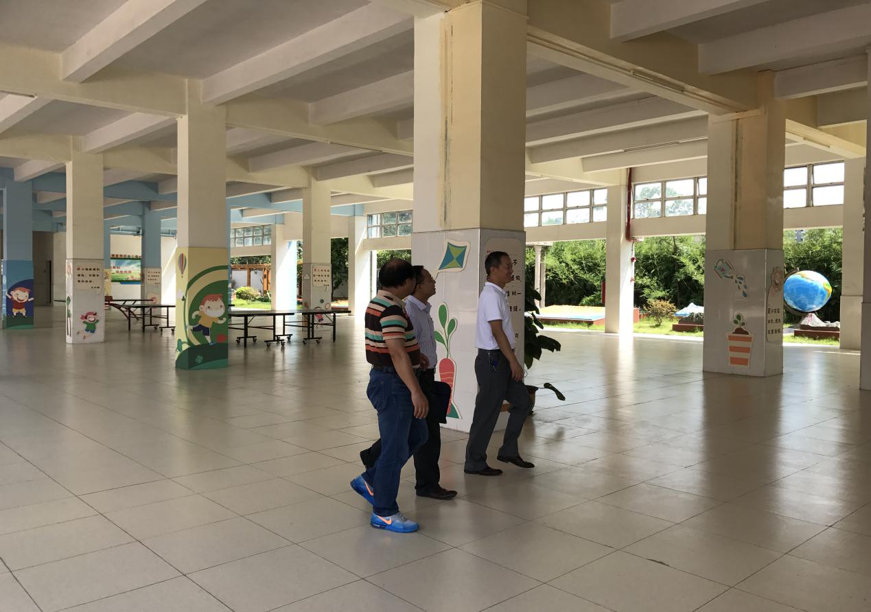 当督导组专家一行冒着骄阳到达小太阳小学时,校长冯煜明率领学校全体行政早早到校门口迎候。