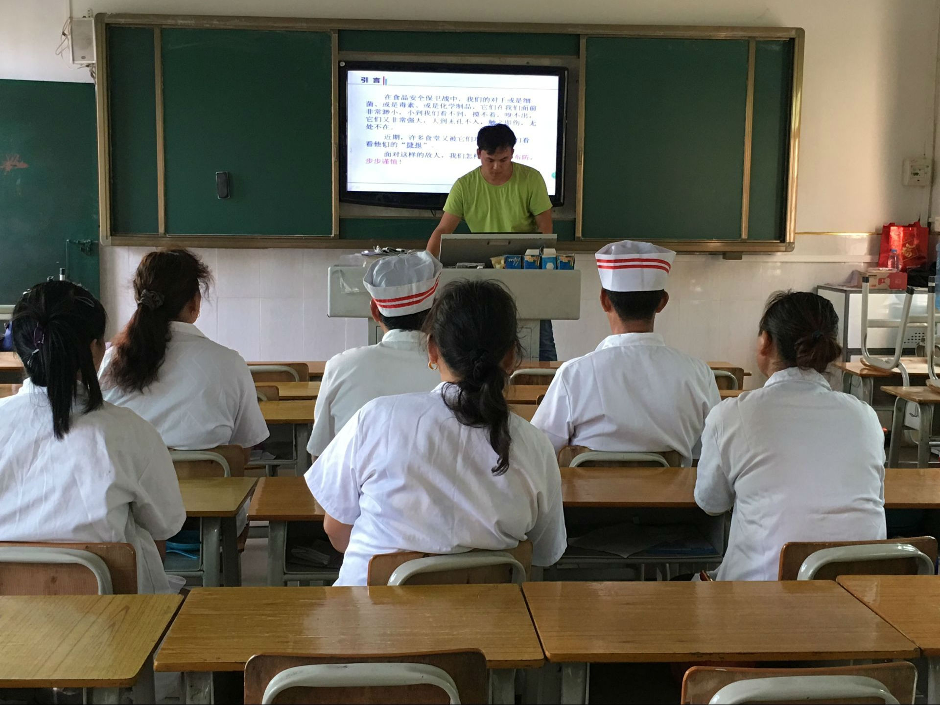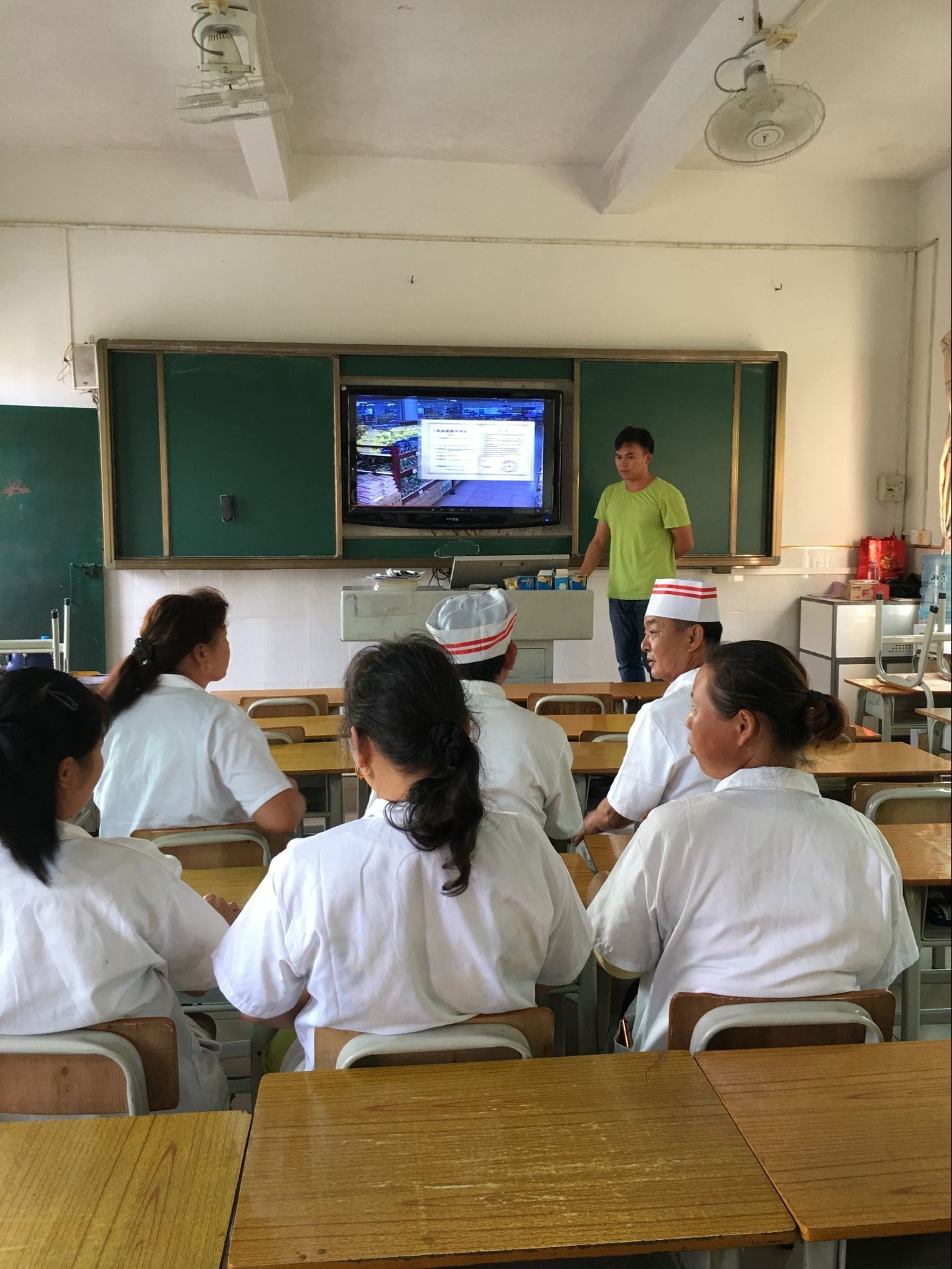 2017年9月18日下午,花都区智元学校召集全体食堂工作人员,在101班教室召开食堂工作人员培训会。