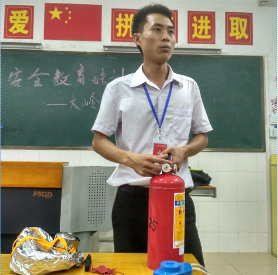 主讲人员就遇到火灾时如何冷静处理做了详细讲解。原以为此次的讲座内容都是枯燥无味的,孰不知,主讲人是一个帅小伙,他用多媒体课件,带来几样消防设备,如灭火器、防毒面具等,清晰易懂的开展本次讲座。