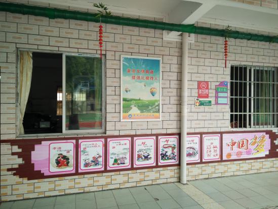 暑假里,校长一边组织老师招生,一边亲自带领老师布置校园文化,其中利用废旧木地板做框,使得平面的贴画有了立体感觉……以下是部分文化布置: