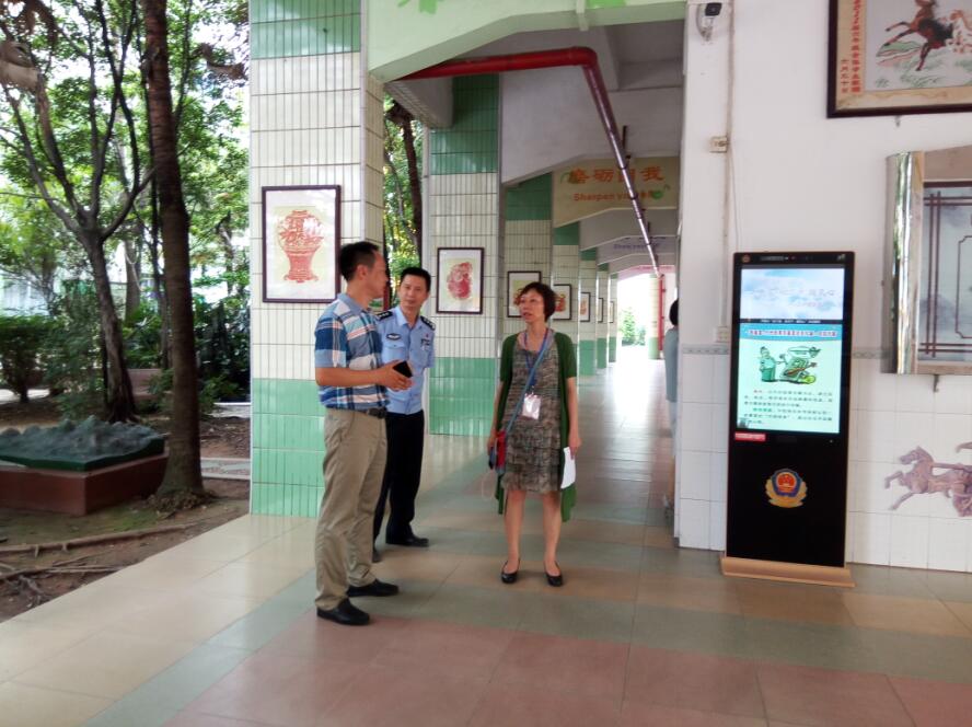 为消除各类安全隐患,确保学校安全稳定,2017年9月21日上午,天河区教育局2017年秋季安全大检查第十九组一行四人在徐芳组长带领下莅临我校。学校领导高度重视,刘校长及两位主任热情接待了检查组成员,法制副校长李警官也全程陪同检查组一起检查校园及周边各项安全工作。