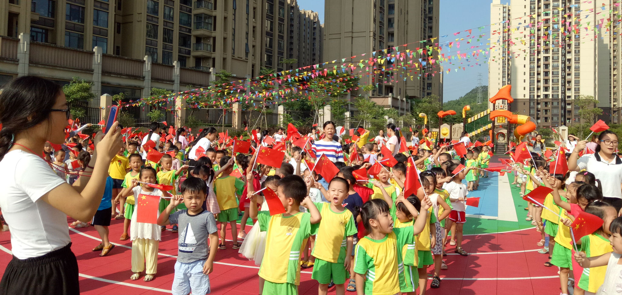 9月30日上午,万博幼儿园的小朋友开展了歌唱红歌的活动,小朋友们用欢快的歌声为祖国妈妈歌唱,他们合唱时表现得生动活泼,一边挥动手中的红旗,突出表演的优美可爱,通过合唱形式,表达了对伟大祖国的热爱和赞美。幼儿亲手绘画、制作国旗,把一面面亲手做的国旗张贴在主题墙上、悬挂在走廊上、立在窗台上等等,表达对祖国妈妈的爱。