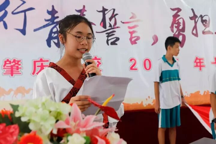 高三学子面向国旗庄严宣誓,以响彻云霄的誓言表达了他们内心对成长与责任的理解,以昂扬的精神风貌展示了肇外高三学子的卓然风采。让我们把对父母的感恩和对老师的感激,化作报效祖国和社会的铮铮誓言吧!今天的我们,为实现理想走进校园,为报效祖国努力学习。