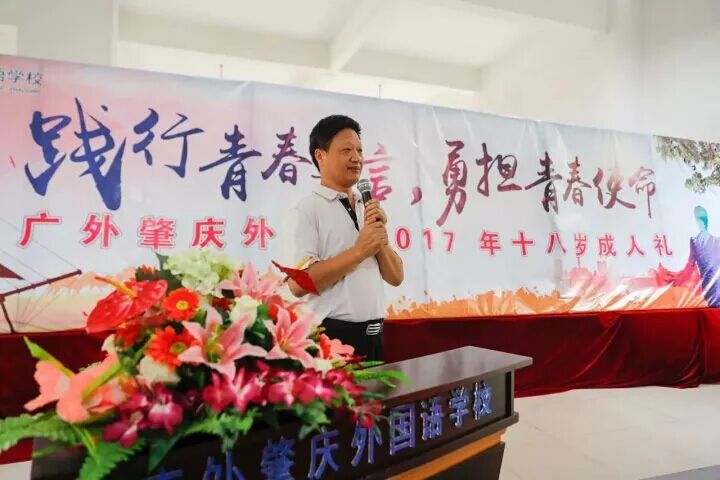 顾长春副校长代表学校向同学们表示祝贺,向为孩子健康成长付出心血的父母和老师表示感谢,勉励所有高三学生学会感恩,勇于担当,在备战高考的过程中展现肇外青年人的精神风貌!