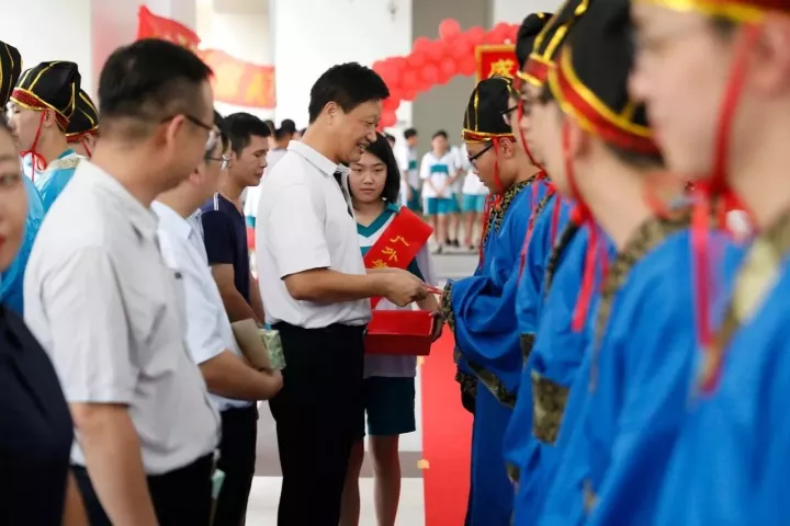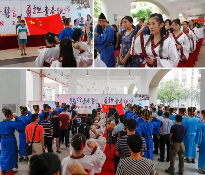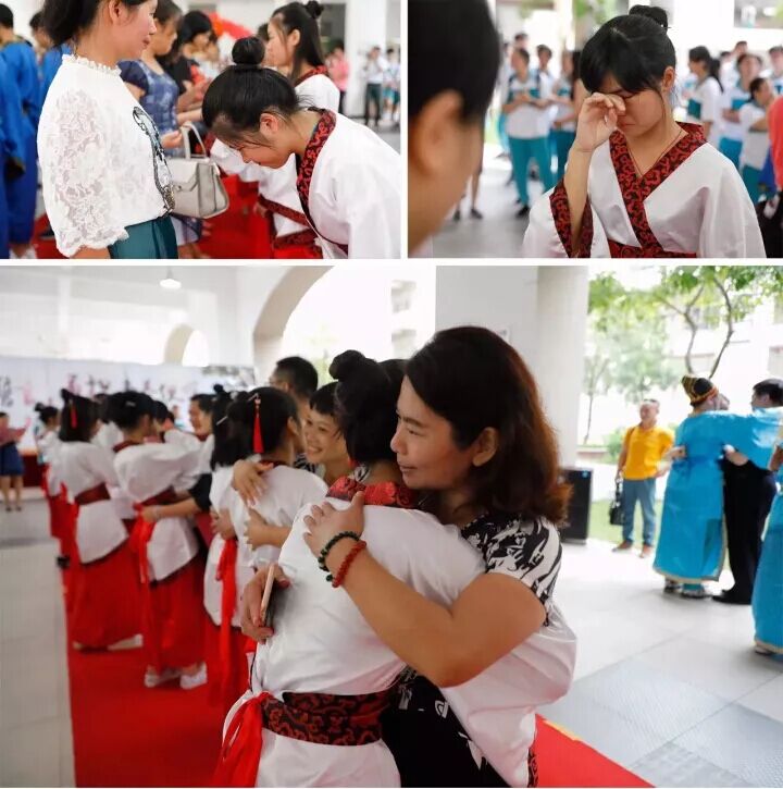 在优美的古典乐曲中,学生家长来到同学们身边为他们“加冠加笄”,冠笄礼是中国汉民族传统的成人仪礼。男子加冠,女子加笄意味着行冠笄礼者由此成为担当家庭与社会责任的成年人。这一刻,饱含了多少风雨成长路上的关爱与辛苦。