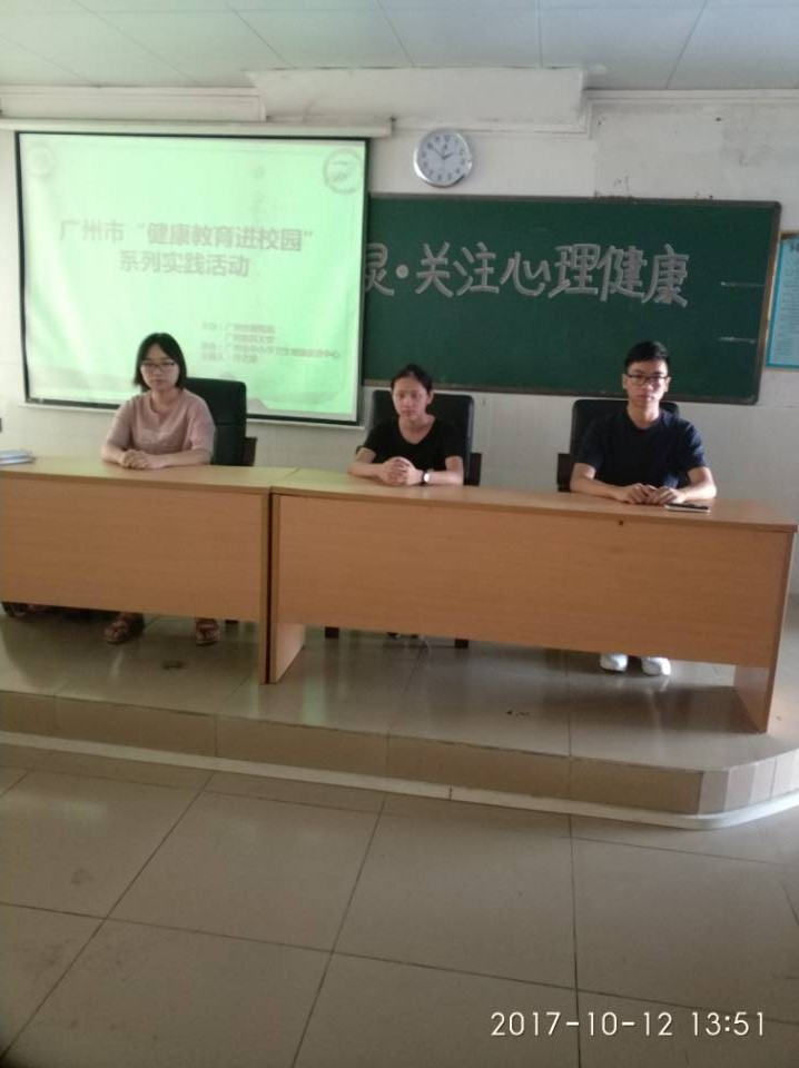 为了提高全体学生的心理素质,不断提升我校学生心理健康水平,促进心理健康教育与心理咨询工作进一步展开,普及心理知识,强化心理素质,2017年10月12日下午2点,广州市健康教育进校园活动在我校如期举行。