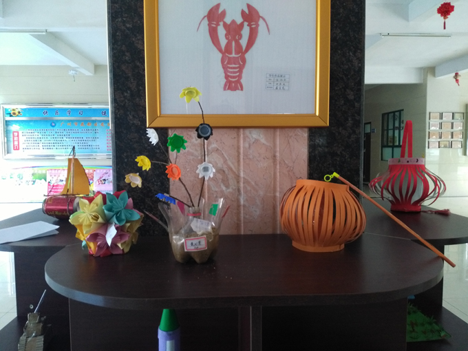 环境保护,功在当代,利在千秋。我校自开办之初就把培养学生的主人翁精神作为办学理念之一。要求学生不仅要做校园的主人翁,更要成为时代的主人翁,而环境保护,就是成为时代主人翁的体现之一。本次的手工制作比赛,主题为“迎国庆、庆中秋”,所选材料必须来自身边及体现环境保护这一主题。学生们开动脑筋,充分发掘生活中可以利用的边角余料,经过巧手,制成了一件件美轮美奂的手工艺术品。利用本次活动作品重新布置的学校大堂,成功吸引了老师、同学们驻足鉴赏的身影,不仅起到了教育作用,更成为了展现我校办学成果的又一面窗口。