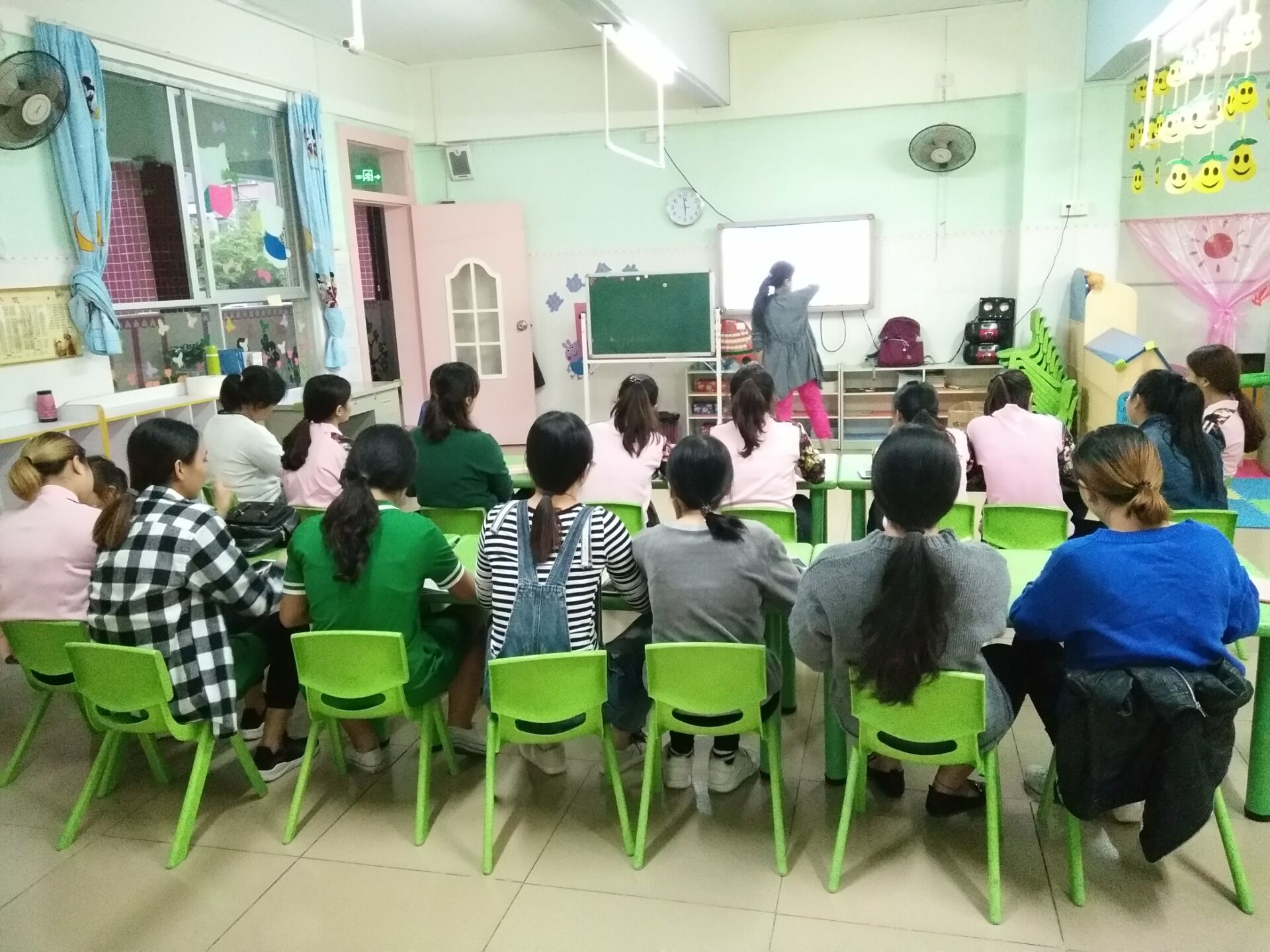 培训过程中,老师们参与性高,学习氛围浓厚。结合幼儿的成长特点,积极创新教学方法策略,正确引导幼儿自主学习,形成有效的师幼互动,使教学更具科学和有效性。