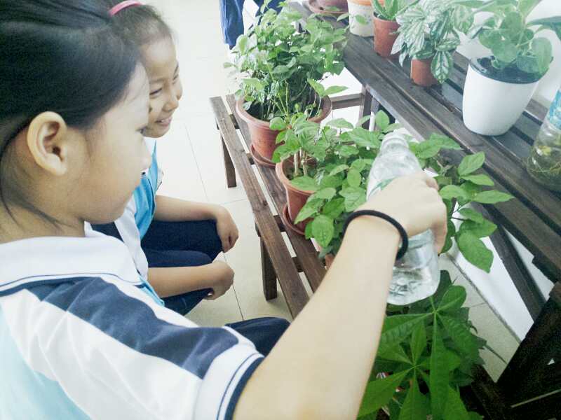(3)各种各样的小花吸引了同学们的目光。每逢课间,不少同学都会围拢过来,细细欣赏这一盆盆美丽的小花,并会根据花盆上的标签来了解它们的生长规律。通过这样的活动,孩子们既增长了知识,培养了责任感,同时也提升了对美的欣赏能力。