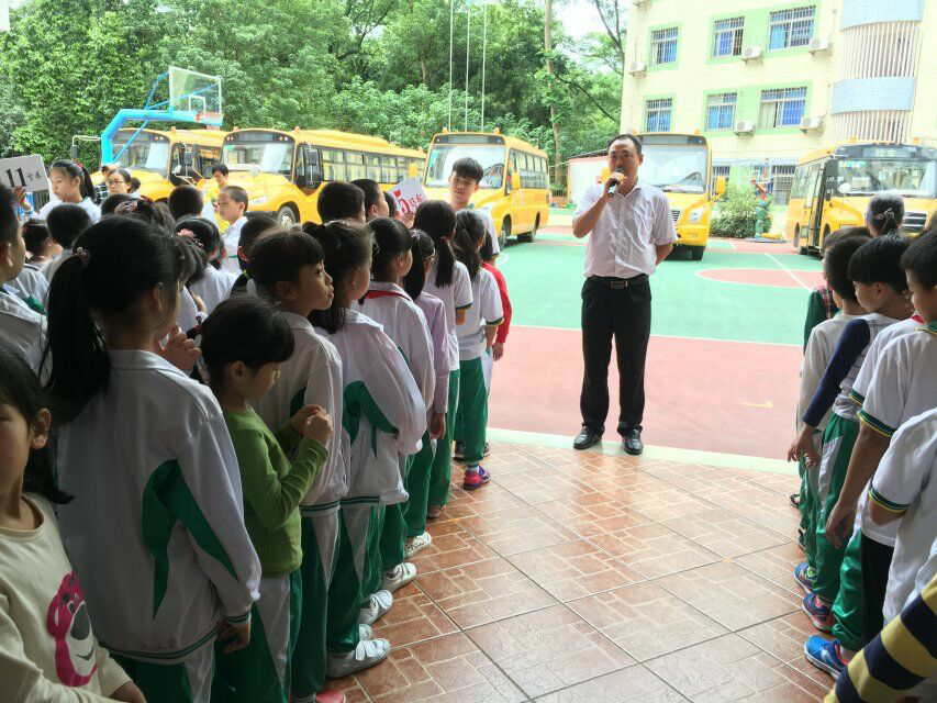 下午两点,演练活动开始。学校主管校车工作的赵再华主任向同学们讲解了在紧急情况下如何应对并紧急逃生自救的技巧,重点讲解了救生锤的使用方法、校车逃生安全通道、安全出口以及逃生顺序路线等知识和具体步骤。