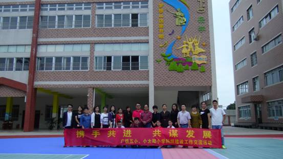 10月20日下午,秋高气爽,格外宜人。小太阳小学校园里洋溢着喜气与繁忙,校长和老师们把广铁五小“送经上门”的队伍迎进了校园,准备进行一场“携手共进,共谋发展”------广铁五小与小太阳小学举办的一场科组建设的交流会。