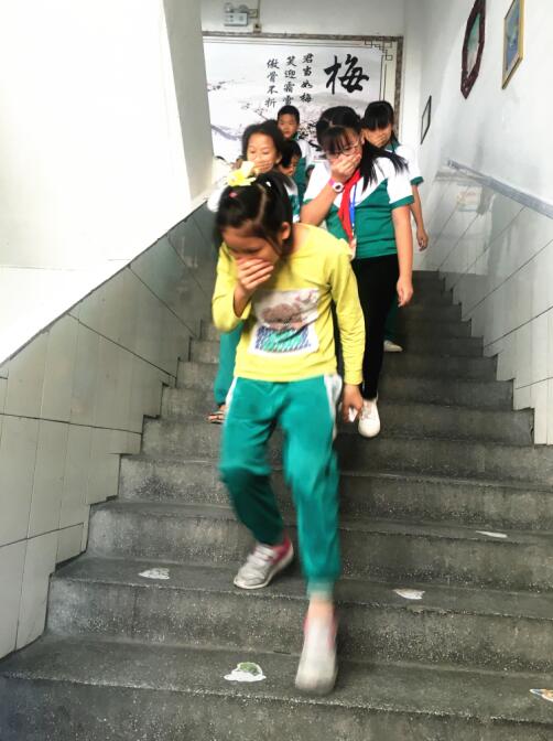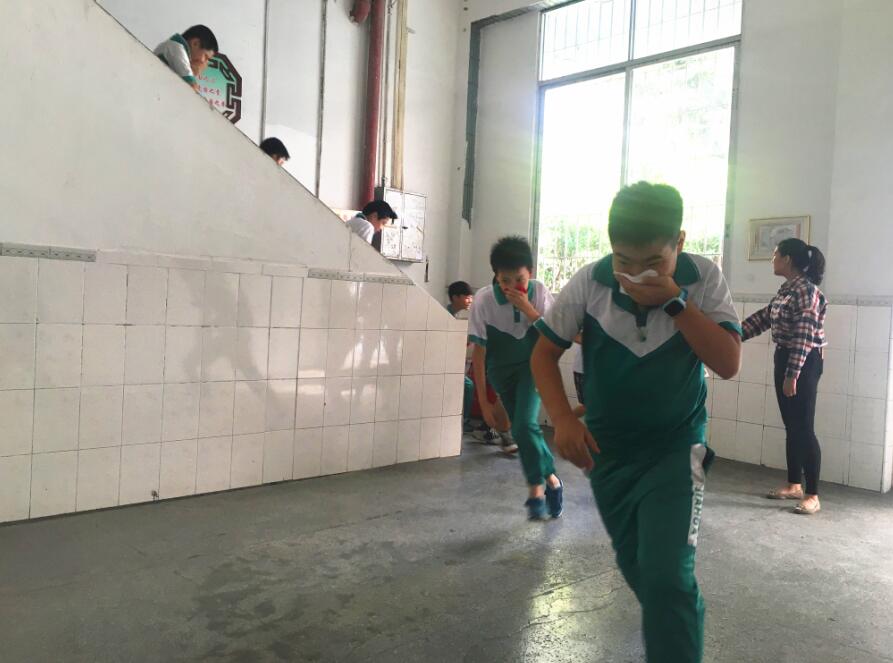 随着一阵急促的警报声响起,“师生应急疏散演练”活动拉开了序幕。听到警报声,全体班主任及任课教师迅速到达指定岗位,带领学生手捂着口鼻,弯着腰,沿着学校指定楼梯口快速行进,有序地撤离到学校操场的安全地带,随即各任课教师清点人数,并向总指挥汇报情况。