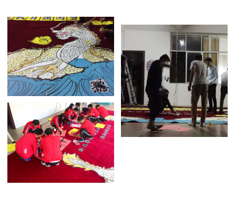 而我们的幕后人员更是大展身手,手绘的霸气巨龙和澎湃浪涛,演绎着老师们心目中最感恩的“龙涛”形象,手写的大字和标题,诉说着红星人“一切尽在不言中”的心里话,一针一线,一修一剪,鲜红的幕布背景上加上了老师们火红的热情,让梦想熠熠生辉。
