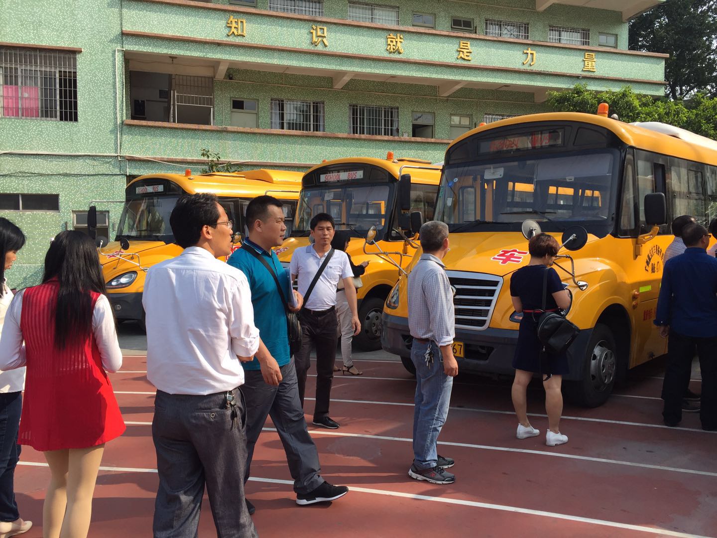首先,所有参会人员和中心沈剑洪专干,对我校校车参观后一致认为:我校校车车容车貌干净、车内卫生整洁、校车标牌有效、灭火器有效、医药急救箱内药瓶齐全、校车安全性能良好、每日安全检查记录清晰、学生接送名单详细、校车安全管理规范。