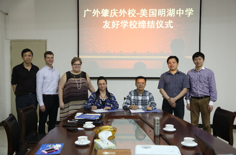 广外附设肇庆外国语学校与美国休斯敦明湖中学缔结友好合作学校并签订中美班合作协议