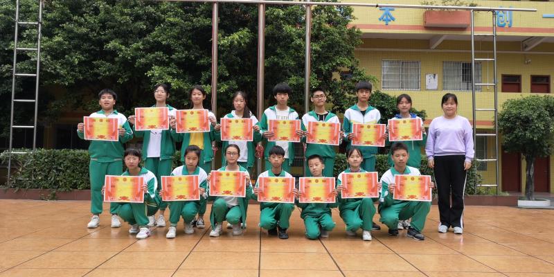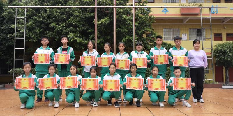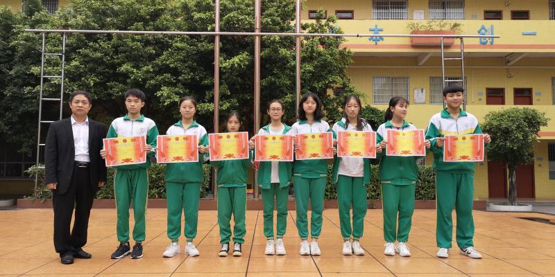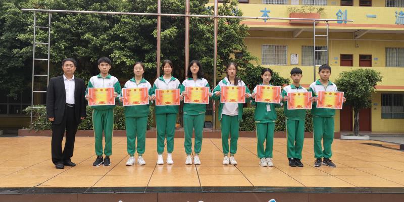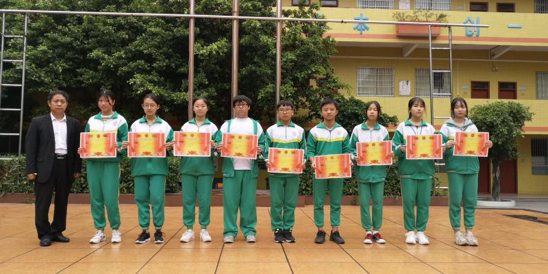 (文科组组长张蒙老师为广州市初中学生“羊城小书虫”名著阅读竞赛初赛活动获奖学生颁奖)