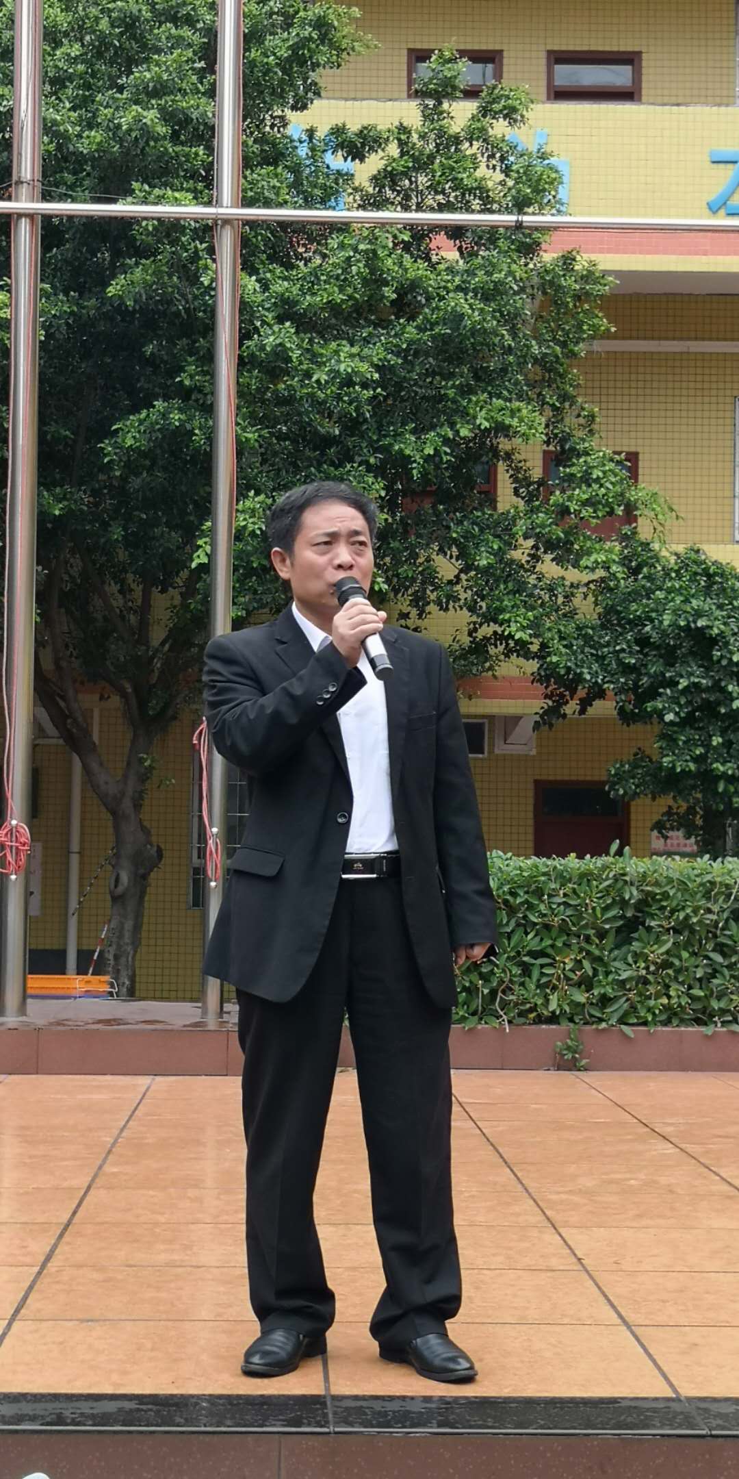 (强新举校长为摄影比赛荣获集体奖的班级颁奖)