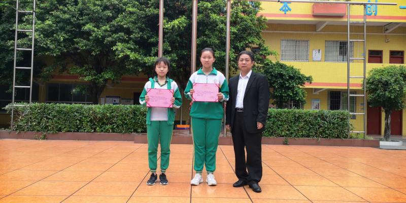 (强新举校长为征文比赛荣获一等奖学生颁奖)