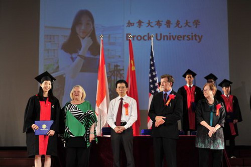 庄严的中、加、美三国国歌的奏响,正式拉开了毕业典礼的帷幕。