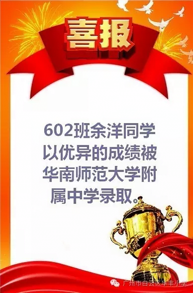 我校取得可喜的成绩,离不开校领导的指导,老师的辛勤付出,家长的鼎力支持,学生的勤奋刻苦。谨此,华丰小学向长期支持和关心学校发展的社会各界人士表示真挚的感谢!同时,向取得优异成绩的学生及家长表示热烈的祝贺!