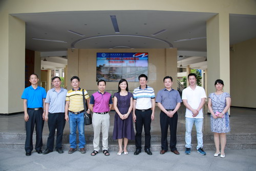 会后,来宾一行在大厅观看了我校的规划图并合影留念。