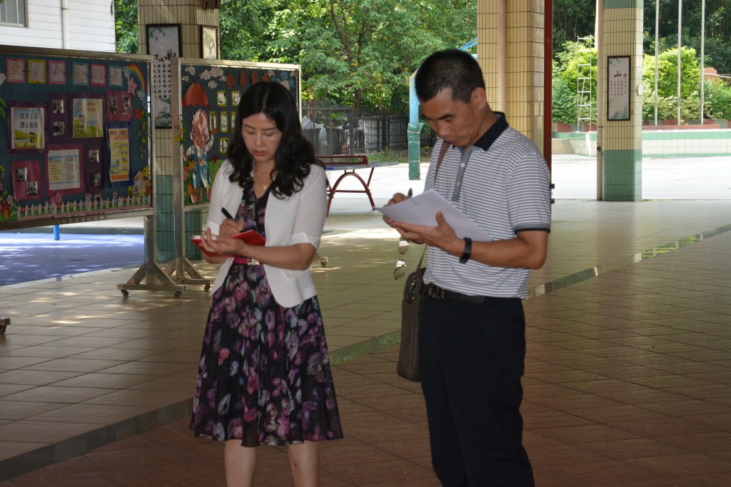 检查组一行10人到校后,迅速分小组深入检查,食品卫生、安保设施、危化物品、校园文化、校容校貌、师生面貌、规范办学。检查项目之多,令人目不暇接。各小组领导实地查看,调阅资料,询问领导,认真细致,专注细节。下午4:30,又集中到44中分别就我校和天河实验幼儿园、44中高中部的检查情况进行反馈总结。各位领导对我校的工作给予了充分认可和表扬,表扬我校工作认真踏实、规范严谨。同时对我校的安保硬件设施提出了更高的要求。