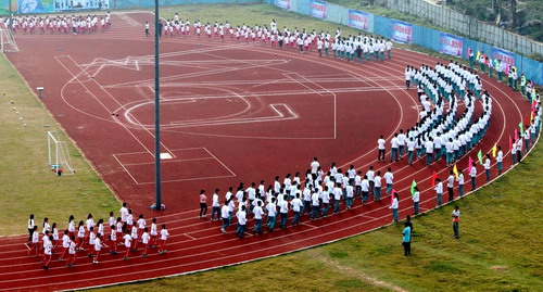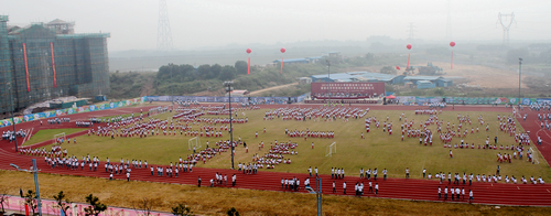 接着,彭银祥局长、刘江南校长等领导、嘉宾为广外肇庆外校足球队队员赠球,彭银祥宣布:肇庆市学校阳光体育冬季长跑起跑,高新区邓继荣局长鸣开幕式枪。随着发令枪的响起,我校中小学2000名师生在活泼、喜悦、富有节奏感的音乐中按方队跑操入场,现场气势壮阔,呈现出运动的活力与激情。