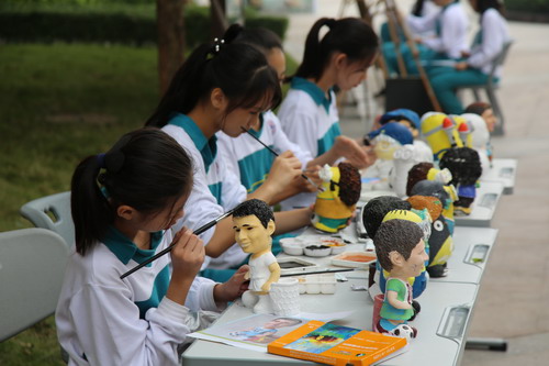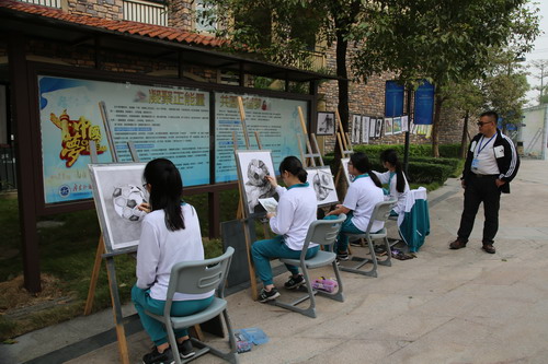 “足球美育”展示。在校道两旁是我校足球美术作品:中国画、手工剪纸、石膏彩绘、素描、儿童画等,同学们还会现场作画或制作作品向来宾展示。此外,来客在当天还可以漫步于我校的足球文化长廊,感受肇外足球校园的氛围,和肇外人一样通过长廊了解世界耀眼的足球巨星、豪华俱乐部、足球赛事、足球技巧等,当然还有肇外的小球星。