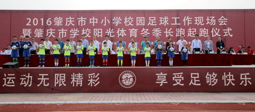11月18日,由肇庆市教育局主办、高新区协办、我校承办的2016中小学校园足球工作现场会暨肇庆市学校阳光体育冬季长跑起跑仪式顺利举行。