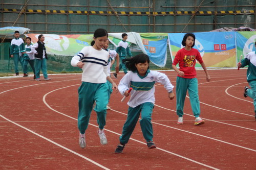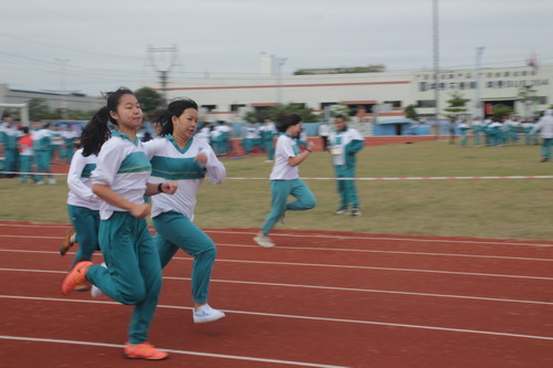 当天,除了中学生的田径运动项目与趣味项目外,中学部及生活处、后勤的跑操与趣味运动也相继开展。用同学们的话说就是:老师老是看着我们运动,今天我们也看老师运动,看他们比赛可也是今天的快乐之一。
