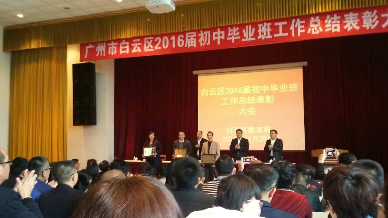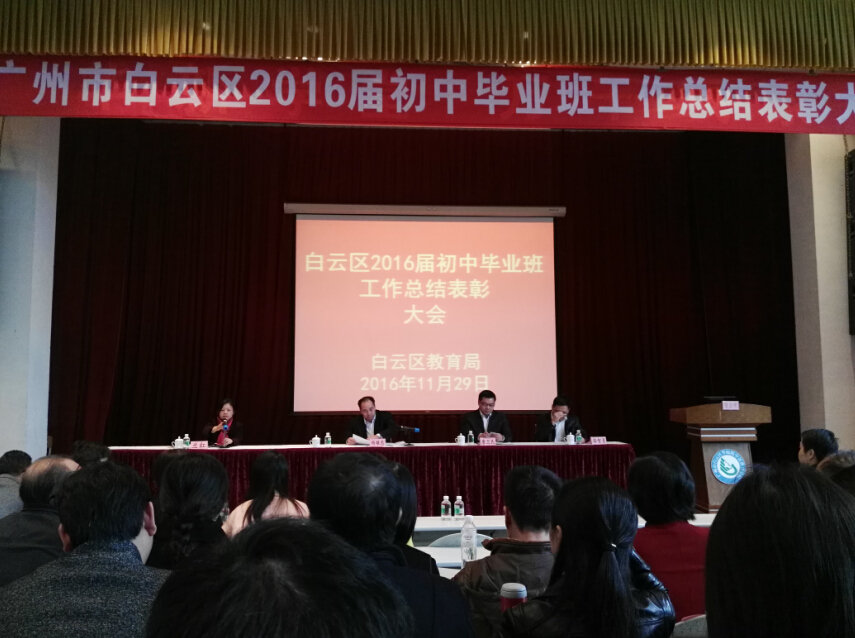 11月29日下午2:30,白云区教育局在华师附中新世界学校隆重召开了2016届初中毕业班工作总结表彰大会。教育局所有局领导、各科室领导、白云区教育发展中心领导、各教育指导中心领导、各公民办初中学校领导和老师共300多人参加会议。我校因2016届毕业班工作成绩突出,按照白云区2016届毕业班工作考评方案,获得了白云区2016届毕业班工作“进步奖”,得到了局领导的肯定和表扬,为学校和公司赢得了荣誉。我校将以此次获奖为契机,鼓舞全校师生工作和学习士气,进一步抓好毕业班工作及初一、二年级基础年级教学工作,争创2017届毕业班中考好成绩!
