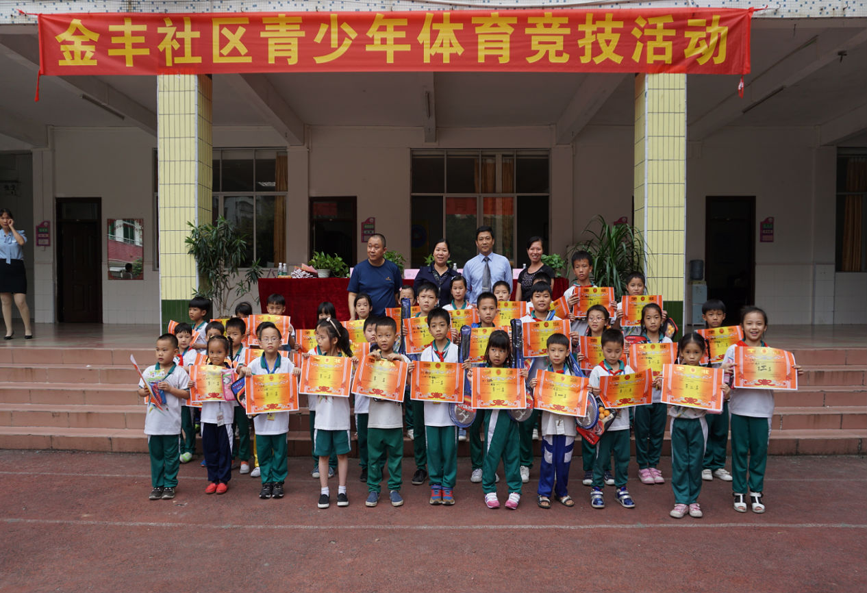 本次运动会形式灵活多样,上午举行学生活动项目,下午举行了教职工及金丰社区员工的联谊赛事。赛场上,低年级的赛跑稚气而扣人心弦;小学部的跳绳欢快而富有韵律;呼啦圈在小朋友稚嫩的腰杆上灵动的盘旋,舞出童年最美的光环;中小学部的羽毛球及拔河比赛让整个赛场沸腾起来,你挑我扣、分分必争,拔河比赛让全体师生都呐喊起来,气氛震撼而热烈。最后,金丰社区员工和我校教职工进行了羽毛球友谊赛。下午三点整,颁奖典礼结束,大会在夕阳的余辉中拉下帷幕。
