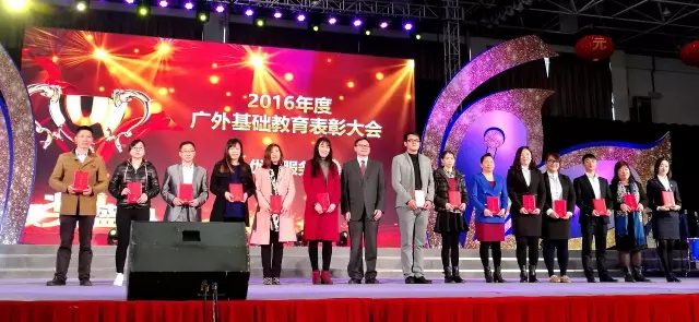 12月30日下午,广东外语外贸大学在北校区体育馆举行基础教育总结表彰大会,对2016年广外各附校、幼儿园优秀教师、优秀班主任和优秀教辅人员给予表彰。我校21名教职工获得殊荣。广外教育集团孙建军总经理宣读表彰决定,广外大学副校长刘建达教授为获奖教职工颁奖。