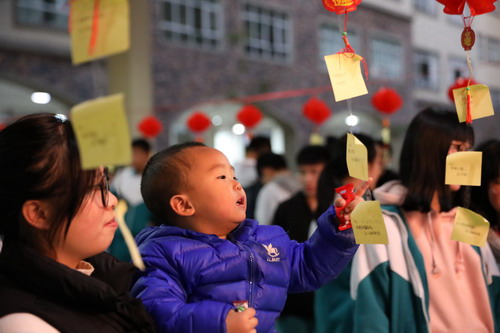 同学们猜得津津有味,联手猜谜,交换意见,时而沉思,时而兴奋说出谜底,赢得奖品。