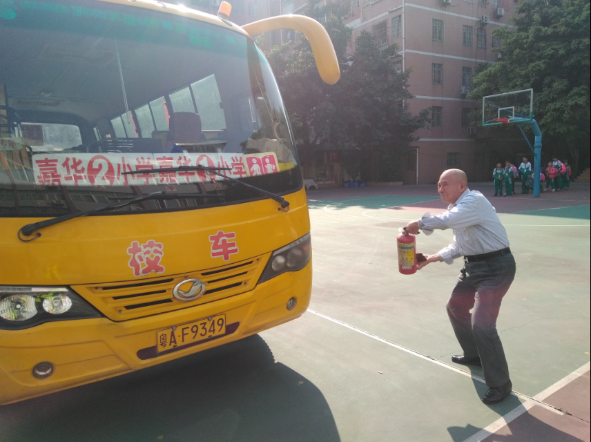 2月13日下午14:20,两辆载有学生的校车在到达学校操场时,车内突然传来“车着火啦!”的呼喊声,何司机和王司机迅速刹车,打开车门、拨打119,拿起灭火器灭火。“请大家镇定,听从指挥!”跟车教师陈志华、万小林等老师迅速组织乘车学生弯着腰、用手捂住口鼻快速有序地从前门下车,安全疏散。历时短短一分钟的时间,两部车上60多名同学有条不紊地撤离到距出事地50米外安全地带,整个演练活动有序、迅速、安全、高效,司机、老师和乘车学生临危不乱。