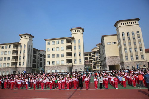 玉猴辞旧,金鸡报春,师生迎新禧。2月17日上午,我校在田径场举行了2016至2017春季学期开学典礼。周小飞校长、国际部Lisa校长、赵辉副校长与全校师生2000多人参加典礼。开学典礼在庄严的升旗仪式后拉开序幕。