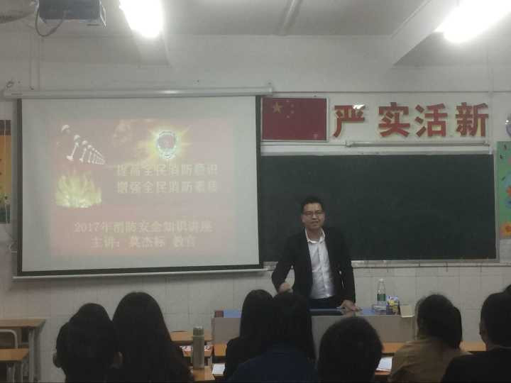 2017年2月20下午,我校有辛邀请到了白云区消防办莫杰标教官到我校开展关于消防安全知识的培训,培训中主要讲习了如何安全自救、脱险的一些基本方法和技能,全体教师受益匪浅。