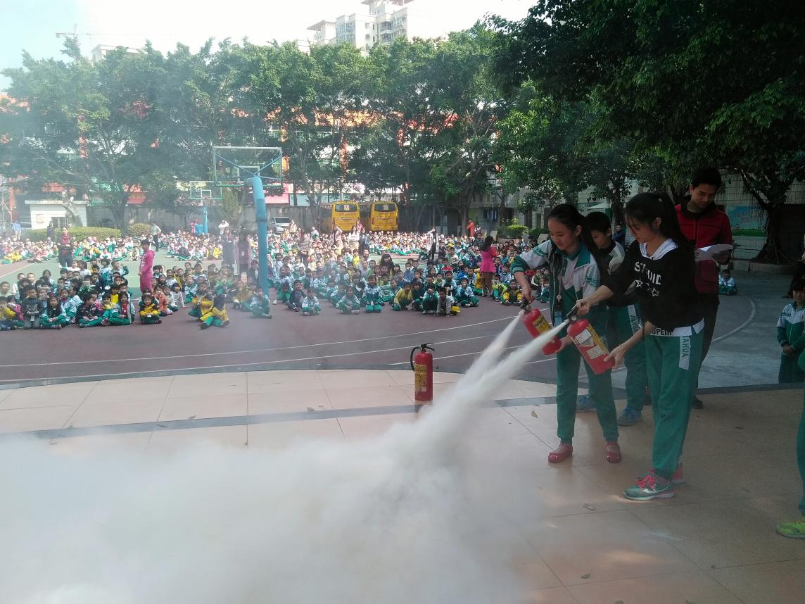 这次演练活动共分为两个部分:一是全体师生消防安全撤离演练,二是教会学生正确使用灭火器的方法。