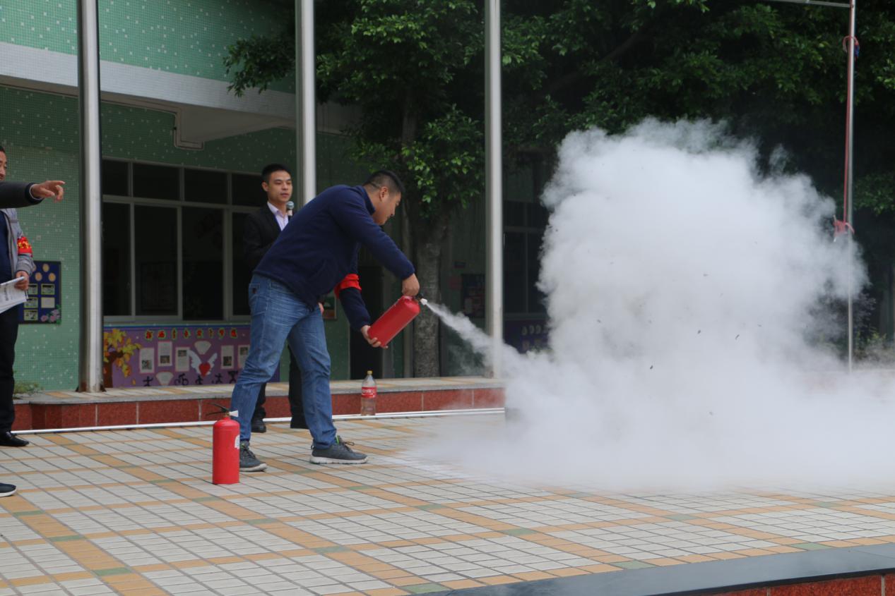 随后,广州市消火消防中心刘教官在操场给全校师生讲解了灭火器的正确使用方法。为达到警醒目的,现场多次点起熊熊大火,学校全体教职员工和学生纷纷实地练习正确使用灭火器。一堂生动的消防安全课增强了师生的防火意识,加深了广大师生正确使用灭火器的印象,提高了师生们应对紧急突发事件的能力。