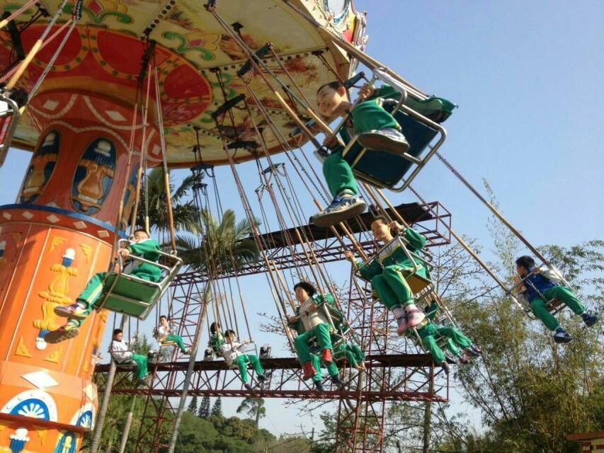 游乐园中不仅景色迷人,还有各种游戏设施可供孩子们任意玩耍。滑滑梯、飞车、摩天轮、水上游艇、遨游太空船.........爱玩什么就玩什么,想怎么玩就怎么玩,没有外界干扰,没有他人争抢,完全属于他们的一片天地,在这里,他们犹如一群快乐小天使在园中奔放。