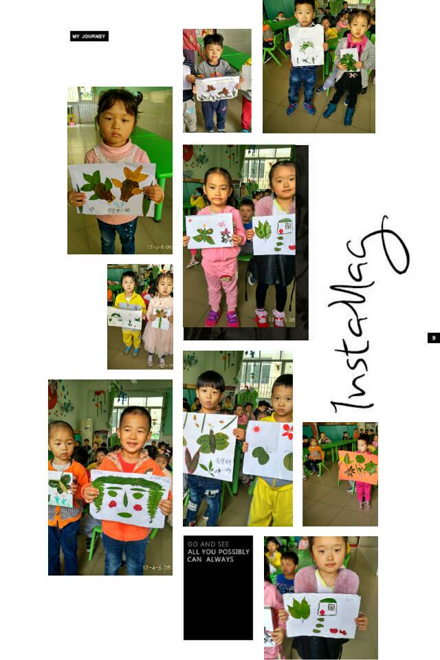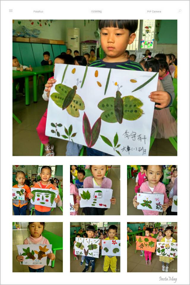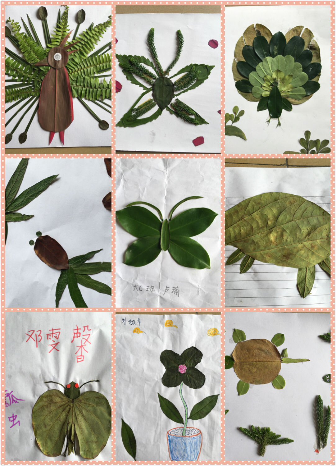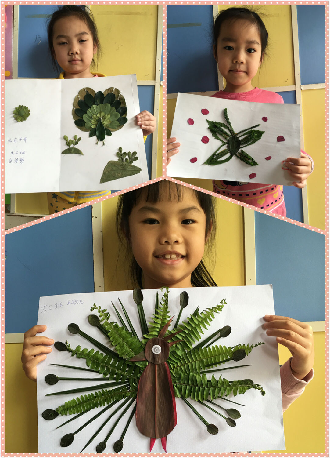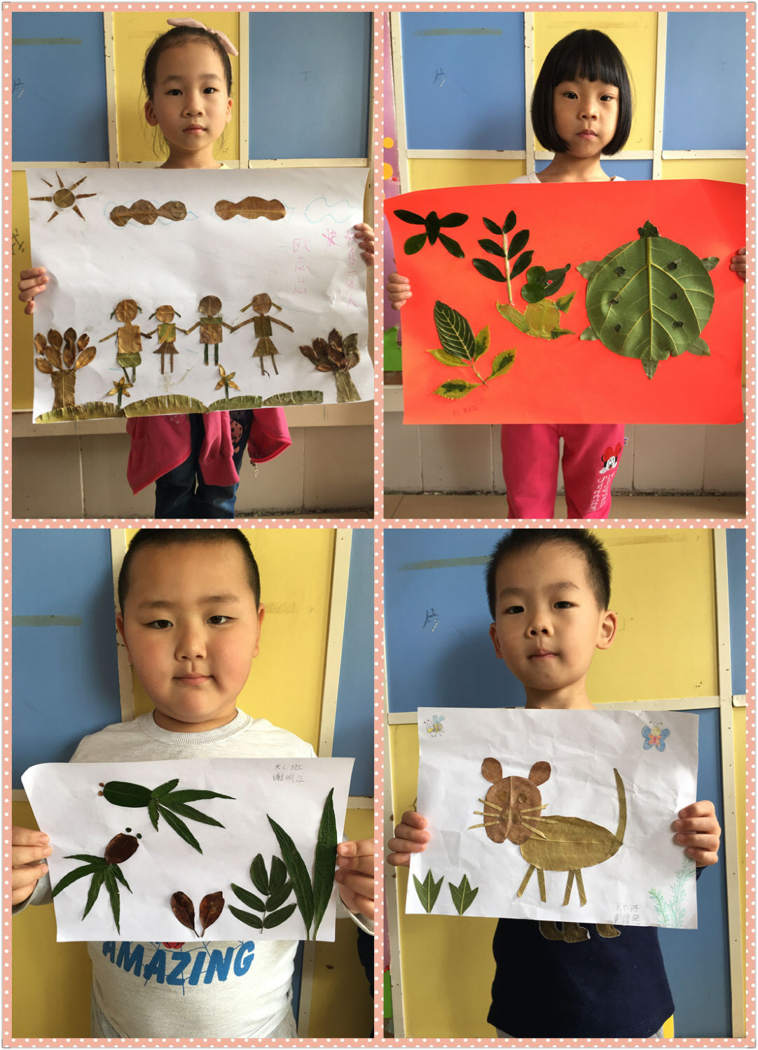 通过这次活动,孩子们在捡树叶→整理树叶→利用树叶的过程中获得认知、情感和能力的全面提升,培养了幼儿初步的表现美的能力,锻炼了孩子的动手操作能力,激发了幼儿对美术活动的兴趣,萌发幼儿感受美、创造美的情趣,更重要的是孩子们深切的感受到了大自然带给我们的欢乐,孩子们更热爱大自然了。