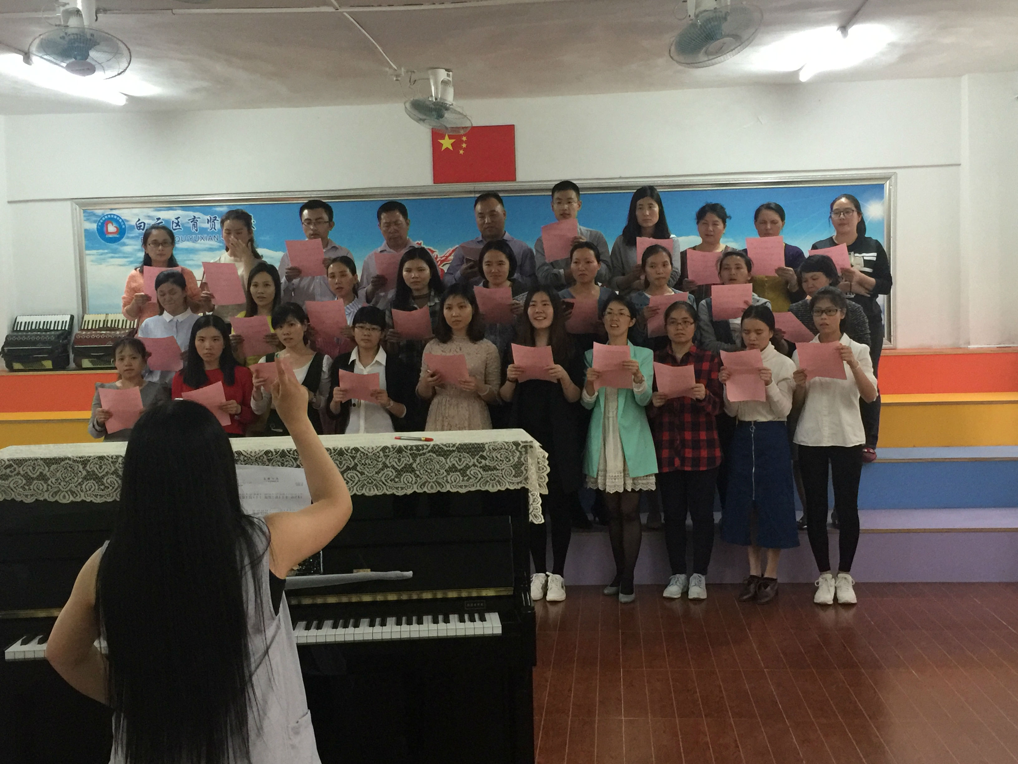 诠释生命意义的总是那绿色的的律动,破解幸福秘密的总是那明媚的阳光。在这春意盎然的时节,在这春光明媚的日子里,2017年4月5日下午五点整,育贤小学校园师生唱响广东龙涛集团企业之歌《龙腾四海》在学校行政的带领下,在专业指导老师的指挥下全体教师的练唱就此拉开了帷幕。