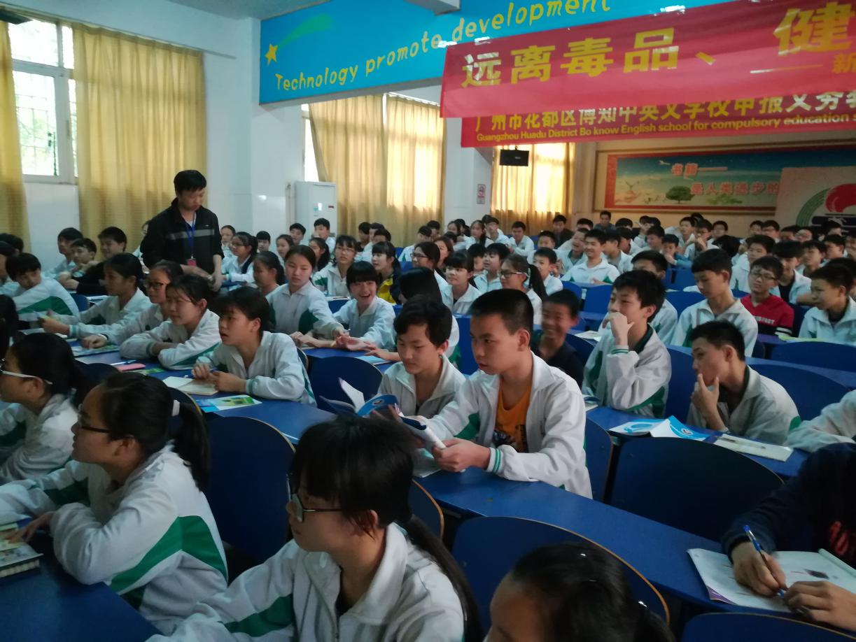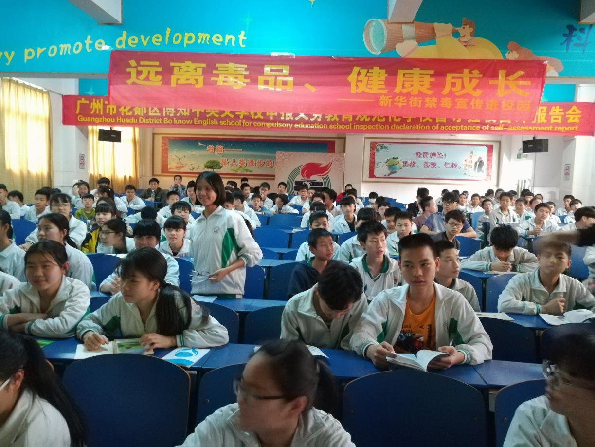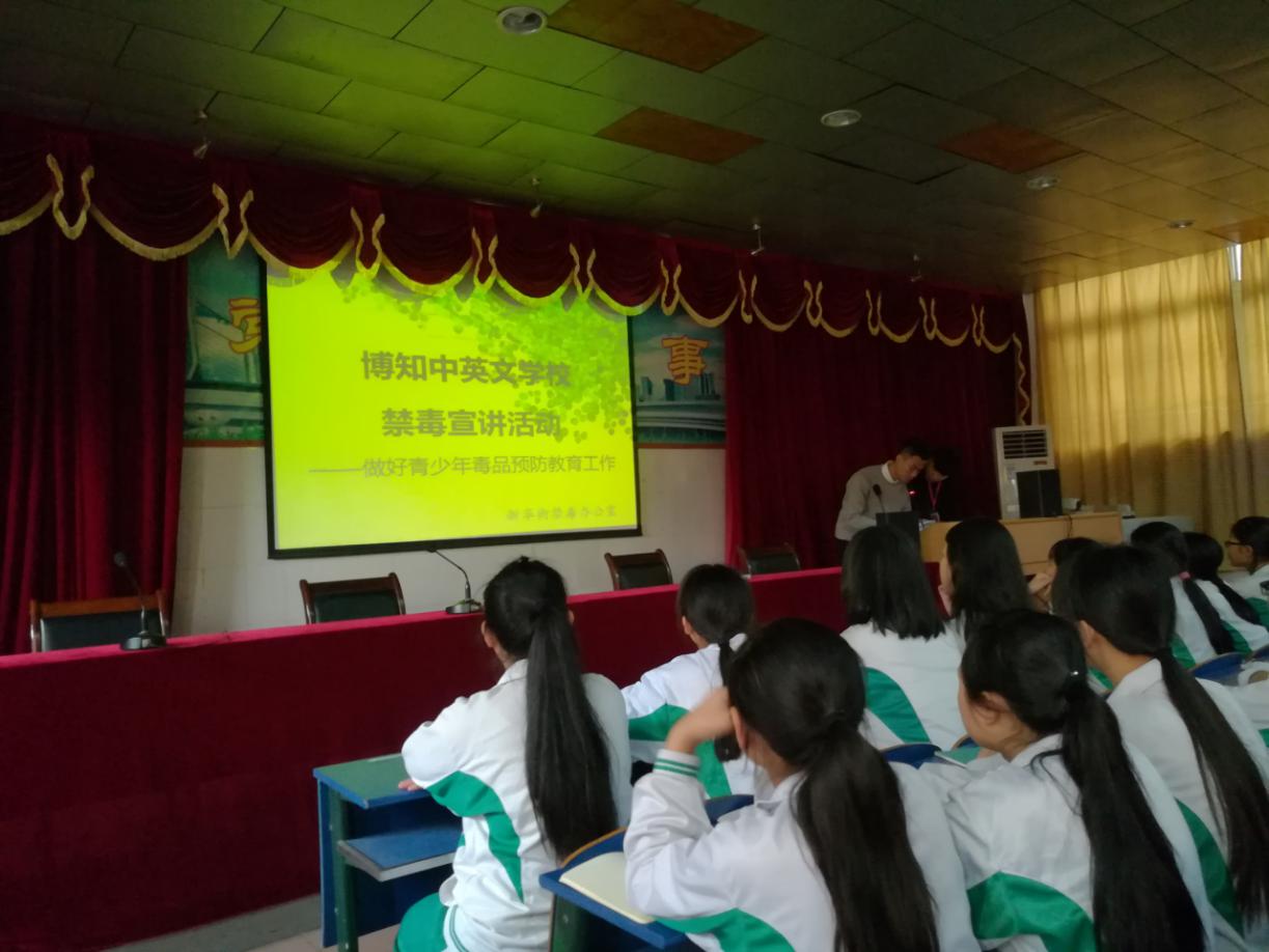 为进一步增强学生的毒品安全意识,提升学生甄别毒品的能力,加强以青少年为重点的全民禁毒宣传教育,让毒品远离校园,为在校学生营造良好的成长环境, 4月14日下午2:30,站前派出所、新华司法所、区禁毒办联合我校开展了禁毒教育专题讲座活动。新华司法所、博知中英文学校法制副校长肖琴及区禁毒办相关同志出席了本次活动。